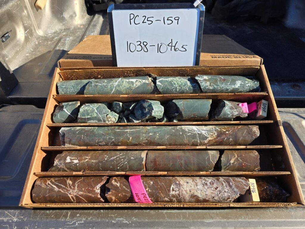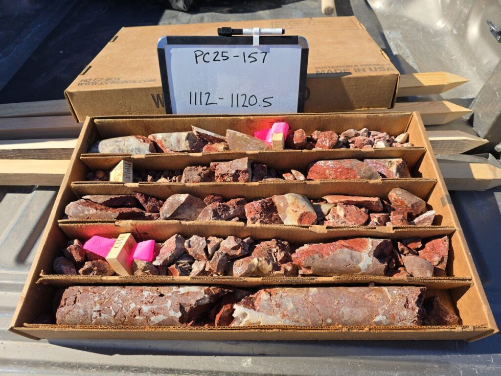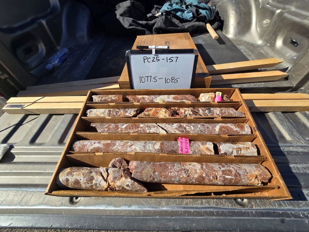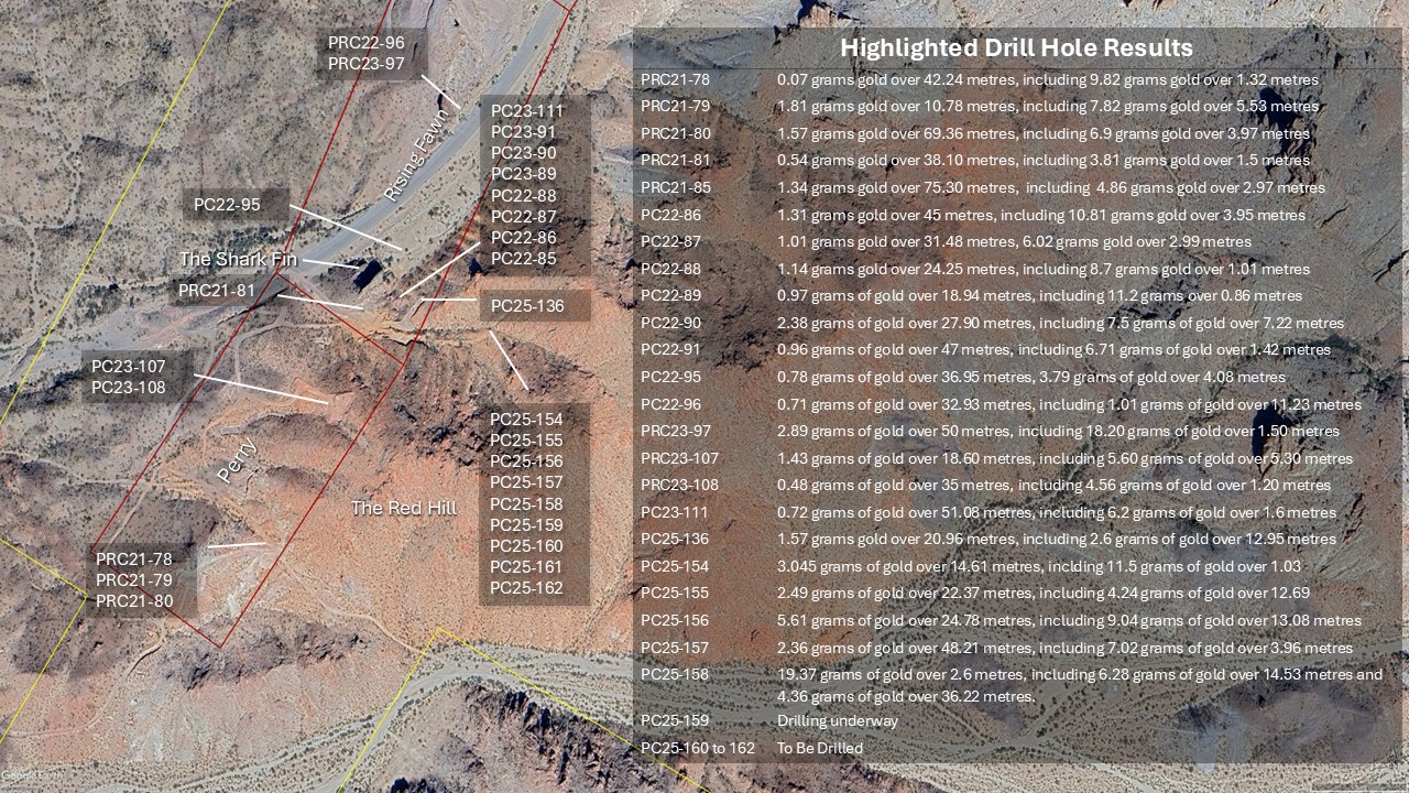 Rising Fawn is a segment of the main trend that lacked the drilling necessary to ultimately provide a resource estimate. PC25-136 is the first of six drill holes recently completed testing down dip and/or along strike of well mineralized intercepts reported earlier (see News Release dated March 19, 2025). PC25-136 was designed as a precursor to stepping further back onto the Company’s BLM pad#2.