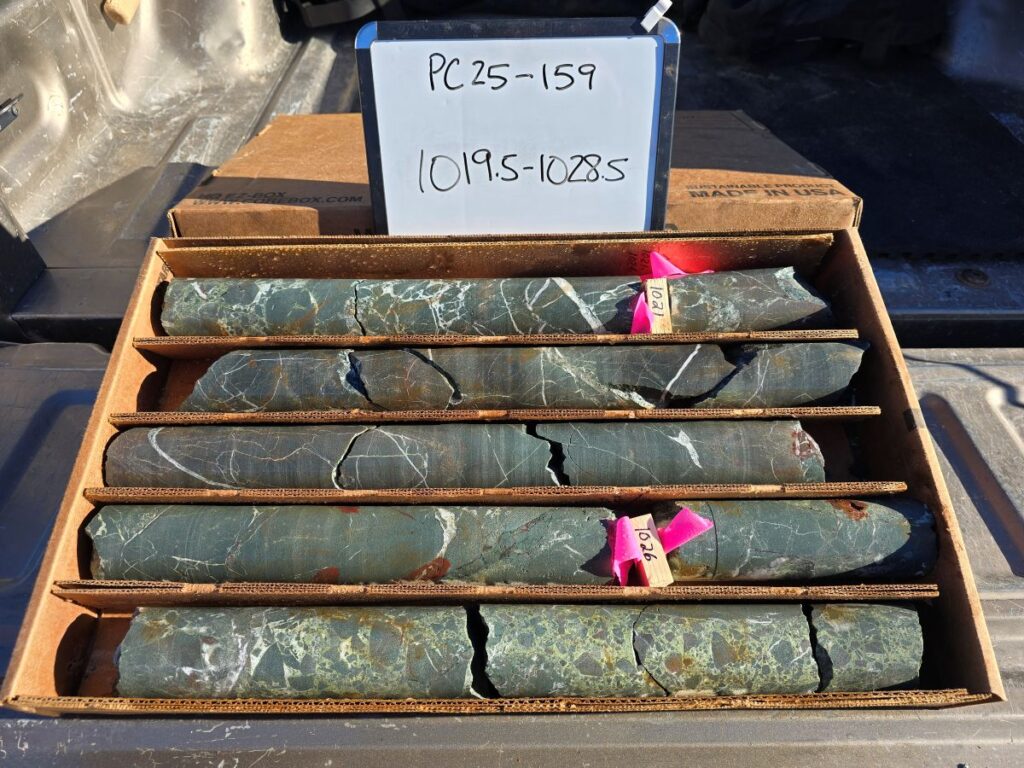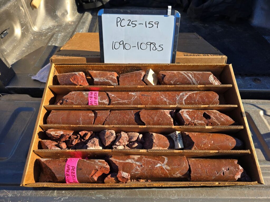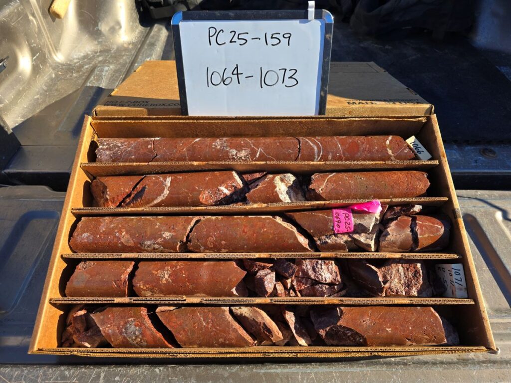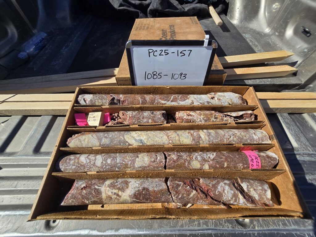 Rising Fawn is a segment of the main trend that lacked the drilling necessary to ultimately provide a resource estimate. PC25-136 is the first of six drill holes recently completed testing down dip and/or along strike of well mineralized intercepts reported earlier (see News Release dated March 19, 2025). PC25-136 was designed as a precursor to stepping further back onto the Company’s BLM pad#2.